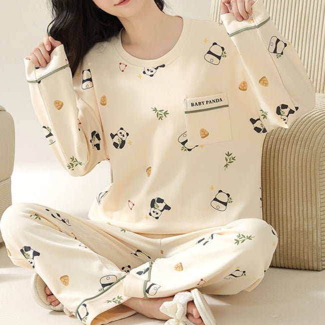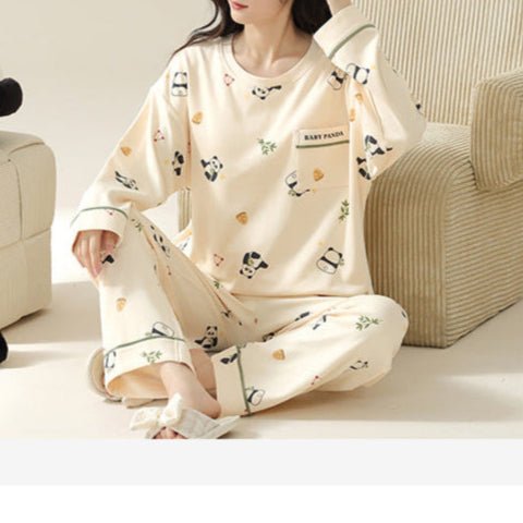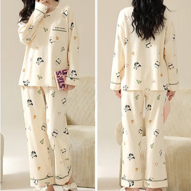 Snuggle up in cuteness with our long sleeve panda print set in the softest creamy beige you’ve ever worn 🥛 Adorned with playful baby pandas, bamboo, and little snacks, it’s a whole kawaii mood 🐾