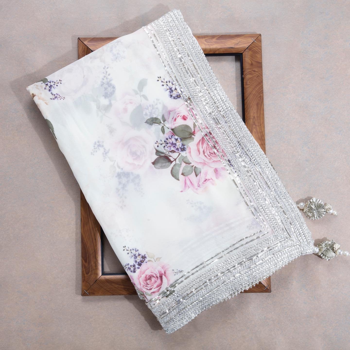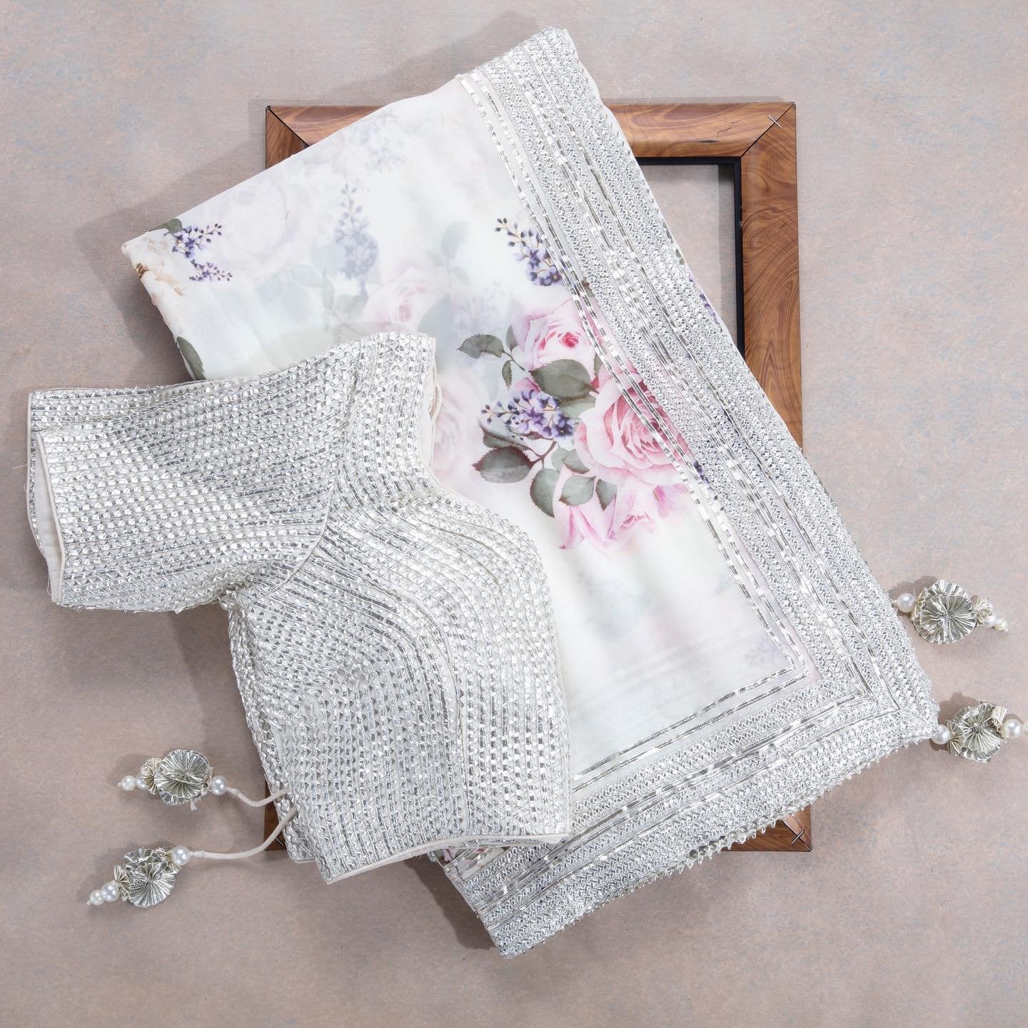 Composition: Sari and blouse length- 6.5 metres. Includes coordinated unstitched blouse piece