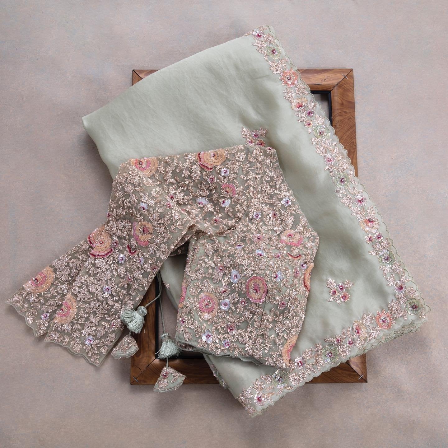 Composition: Sari and blouse length- 6.5 metres. Includes coordinated unstitched blouse piece
