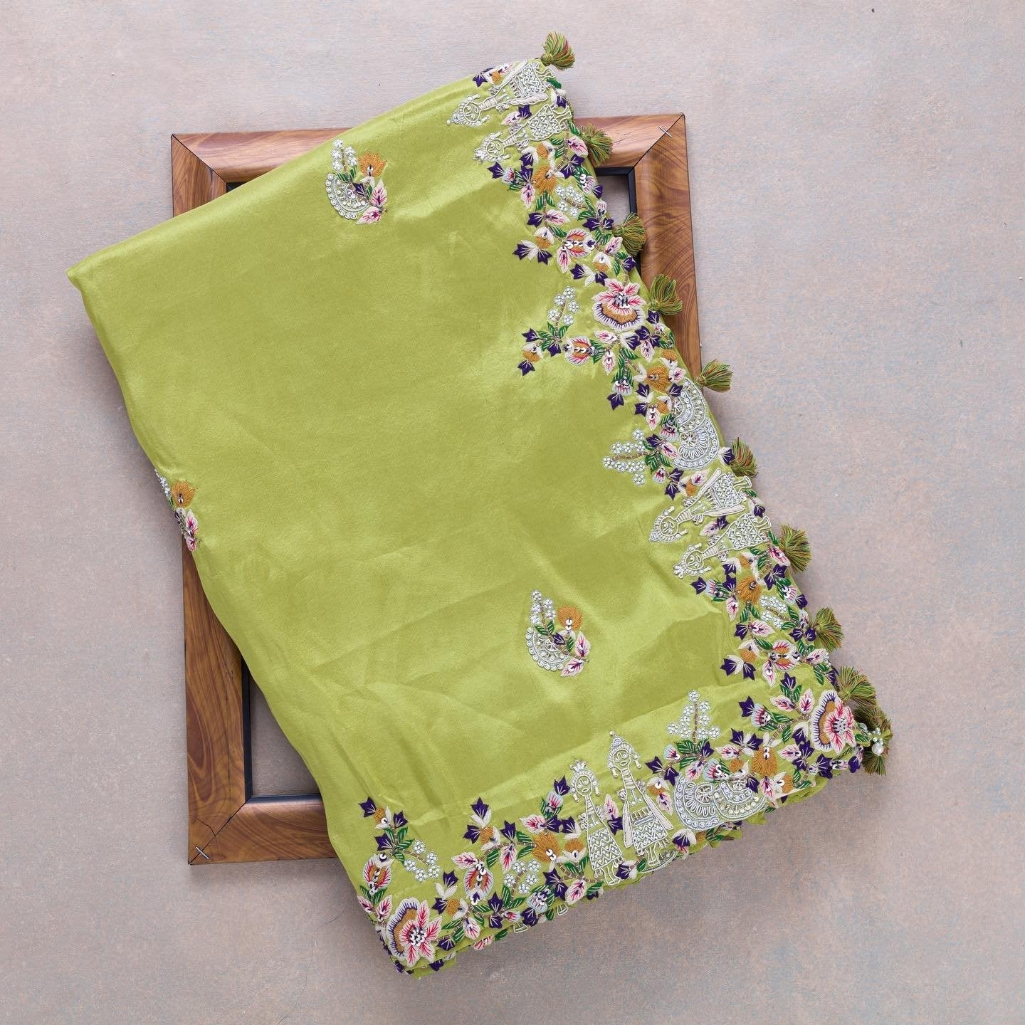 Composition: Sari and blouse length- 6.5 metres. Includes coordinated unstitched blouse piece
