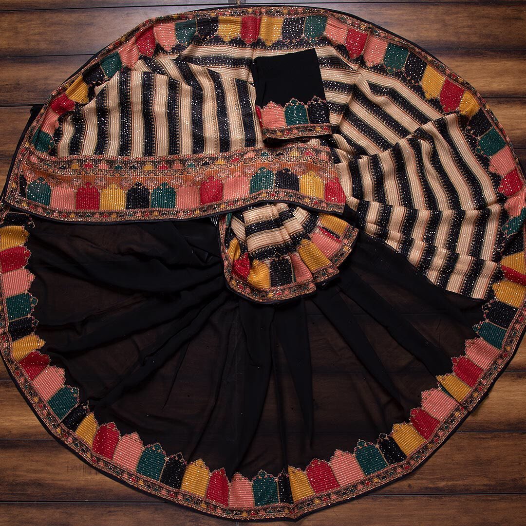 Composition: Sari and blouse length- 6.5 metres. Includes coordinated unstitched blouse piece