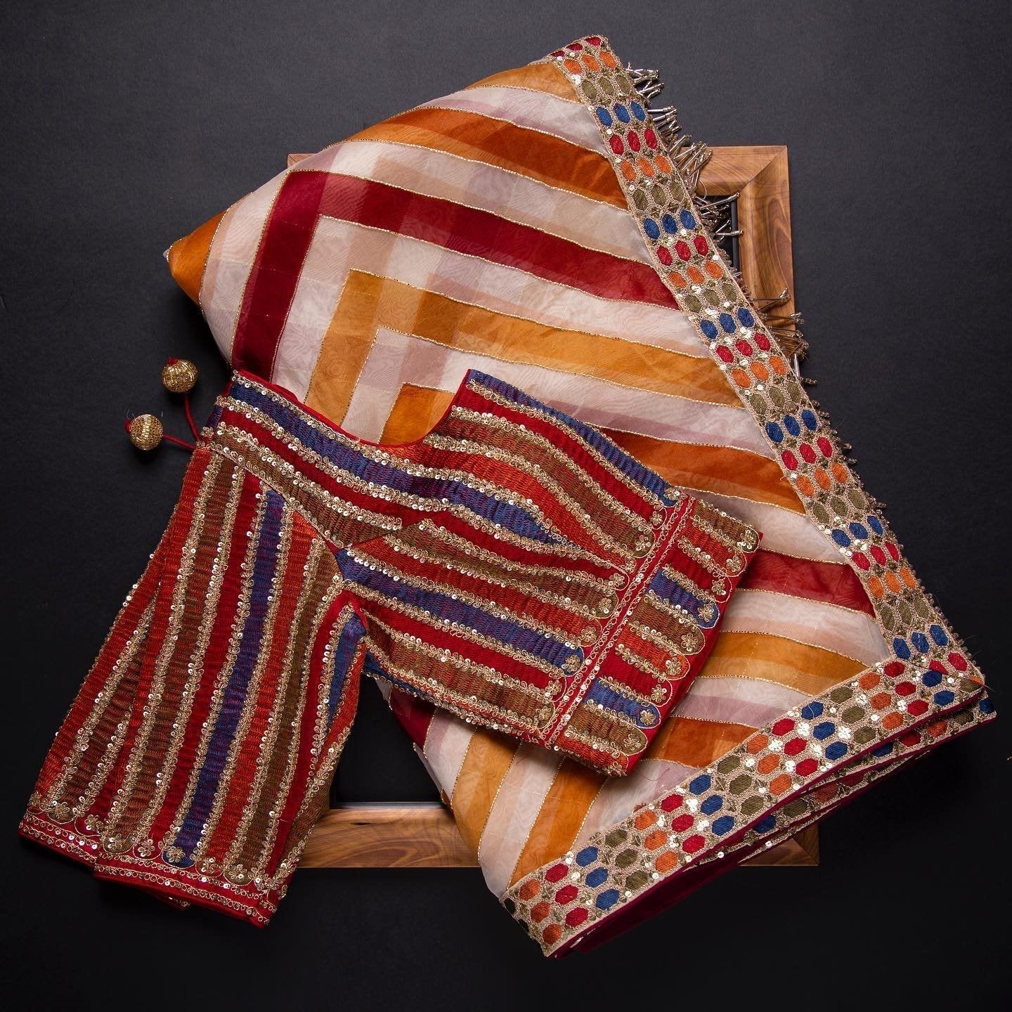 Composition: Sari and blouse length- 6.5 metres. Includes coordinated unstitched blouse piece