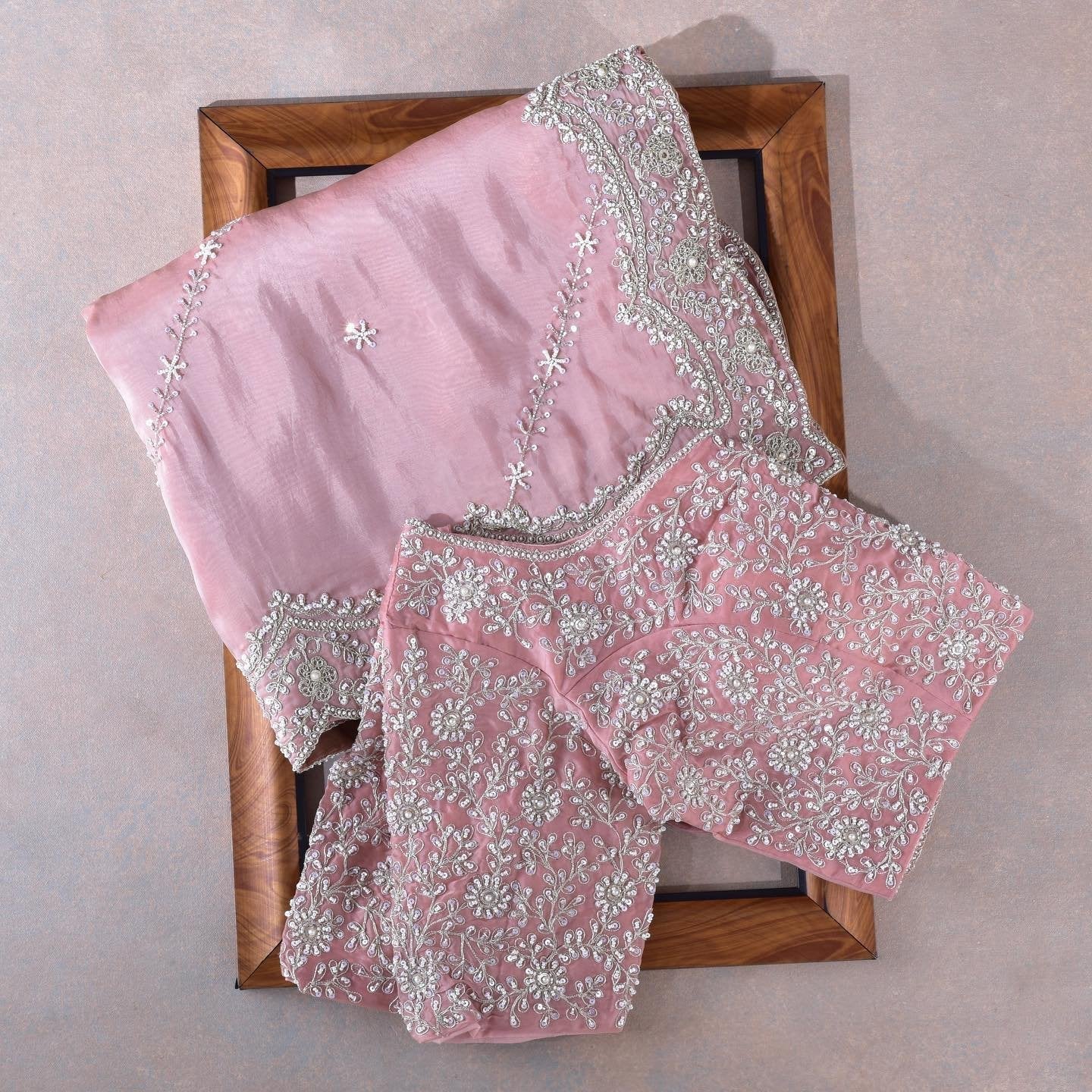 Composition: Sari and blouse length- 6.5 metres. Includes coordinated unstitched blouse piece