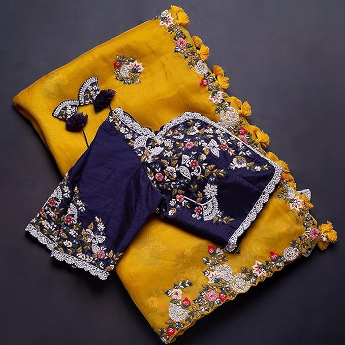 Composition: Sari and blouse length- 6.5 metres. Includes coordinated unstitched blouse piece