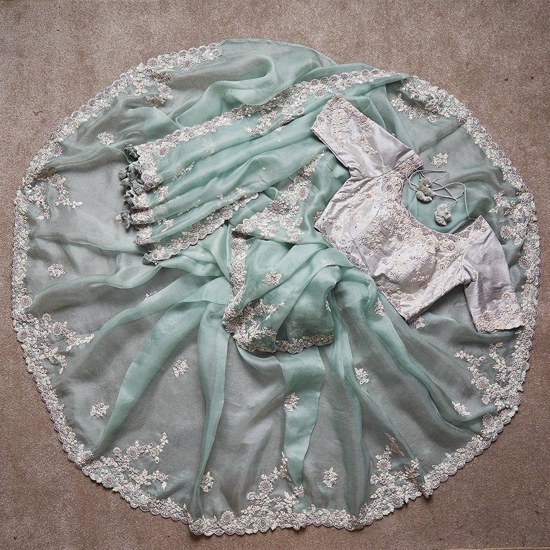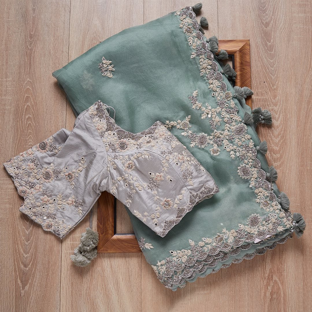 Composition: Sari and blouse length- 6.5 metres. Includes coordinated unstitched blouse piece
