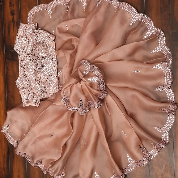 Composition: Sari and blouse length- 6.5 metres. Includes coordinated unstitched blouse piece