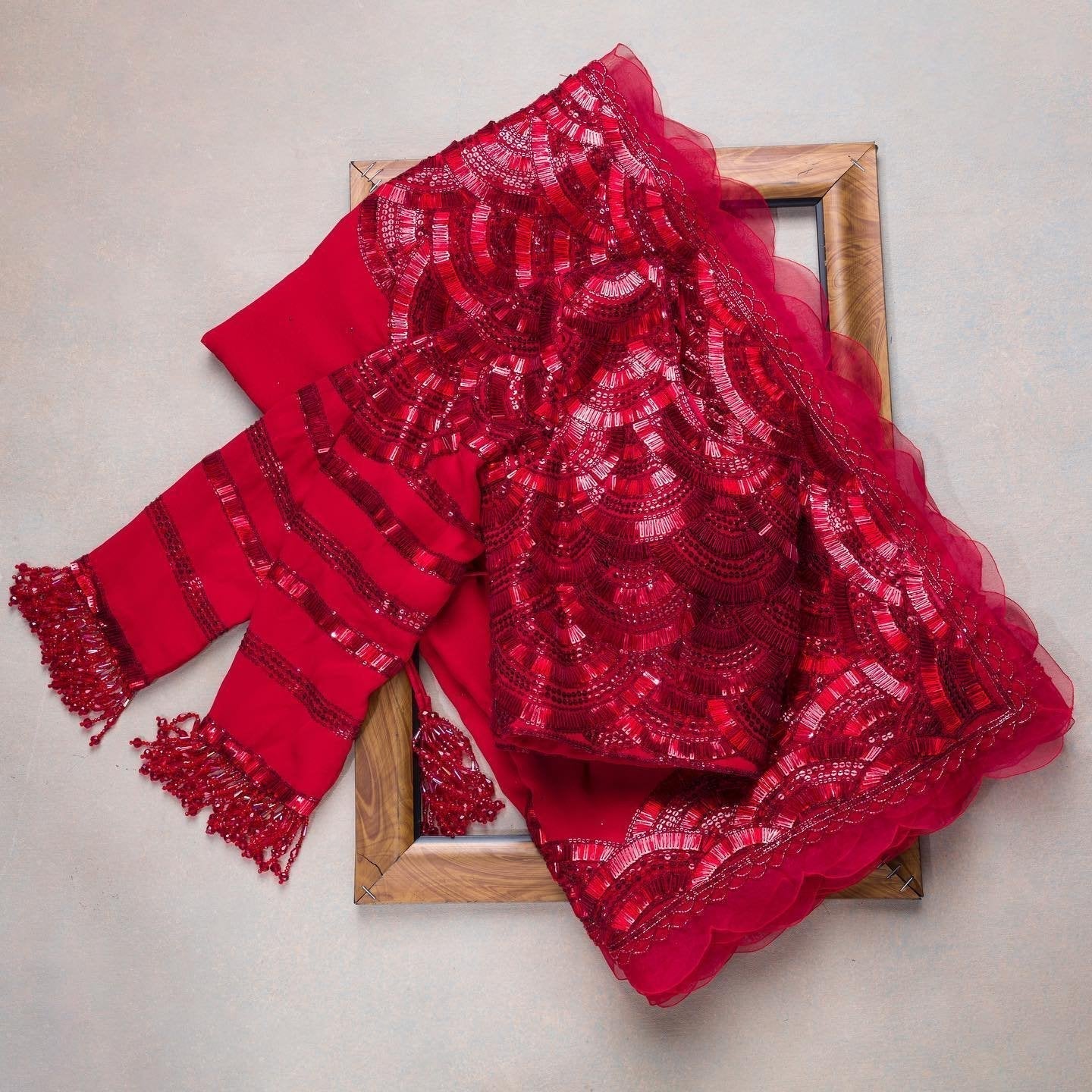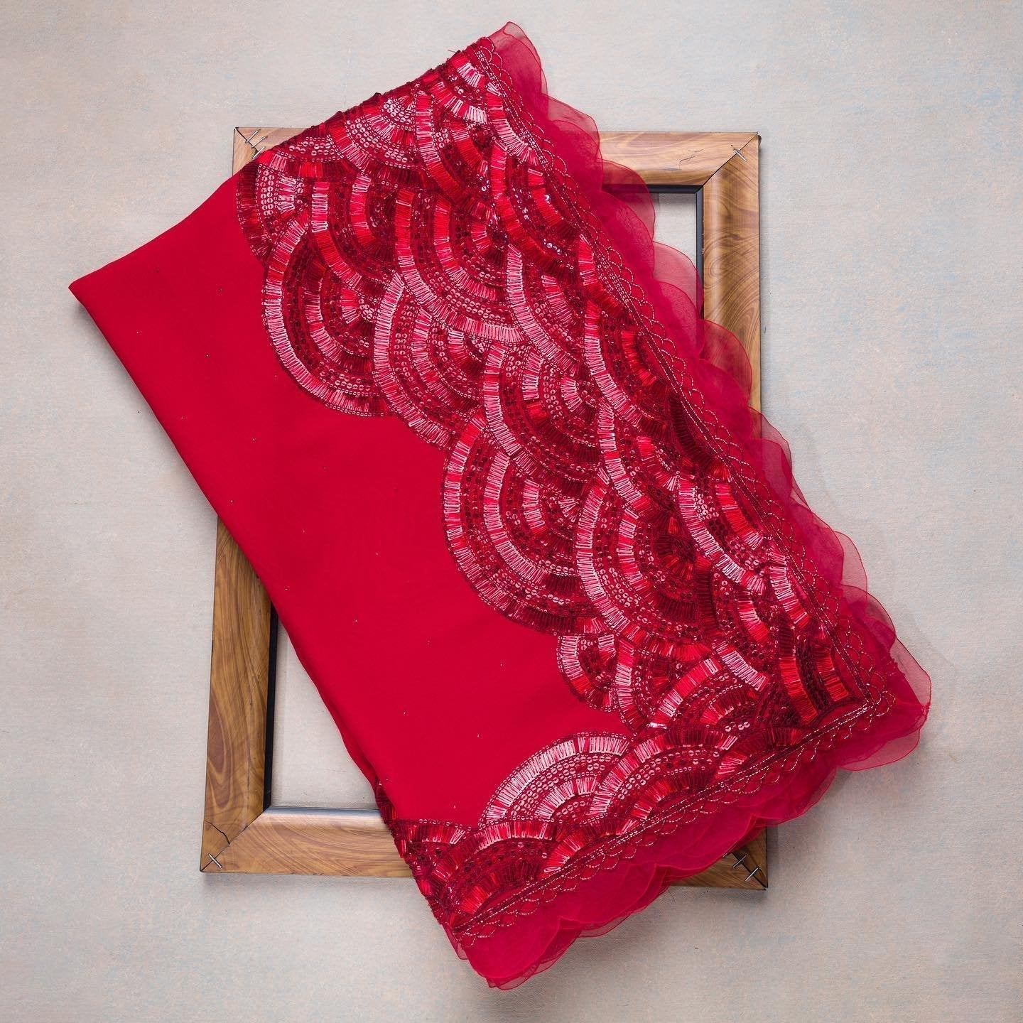 Composition: Sari and blouse length- 6.5 metres. Includes coordinated unstitched blouse piece