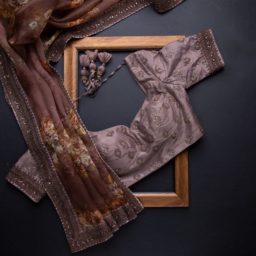 Composition: Sari and blouse length- 6.5 metres. Includes coordinated unstitched blouse piece