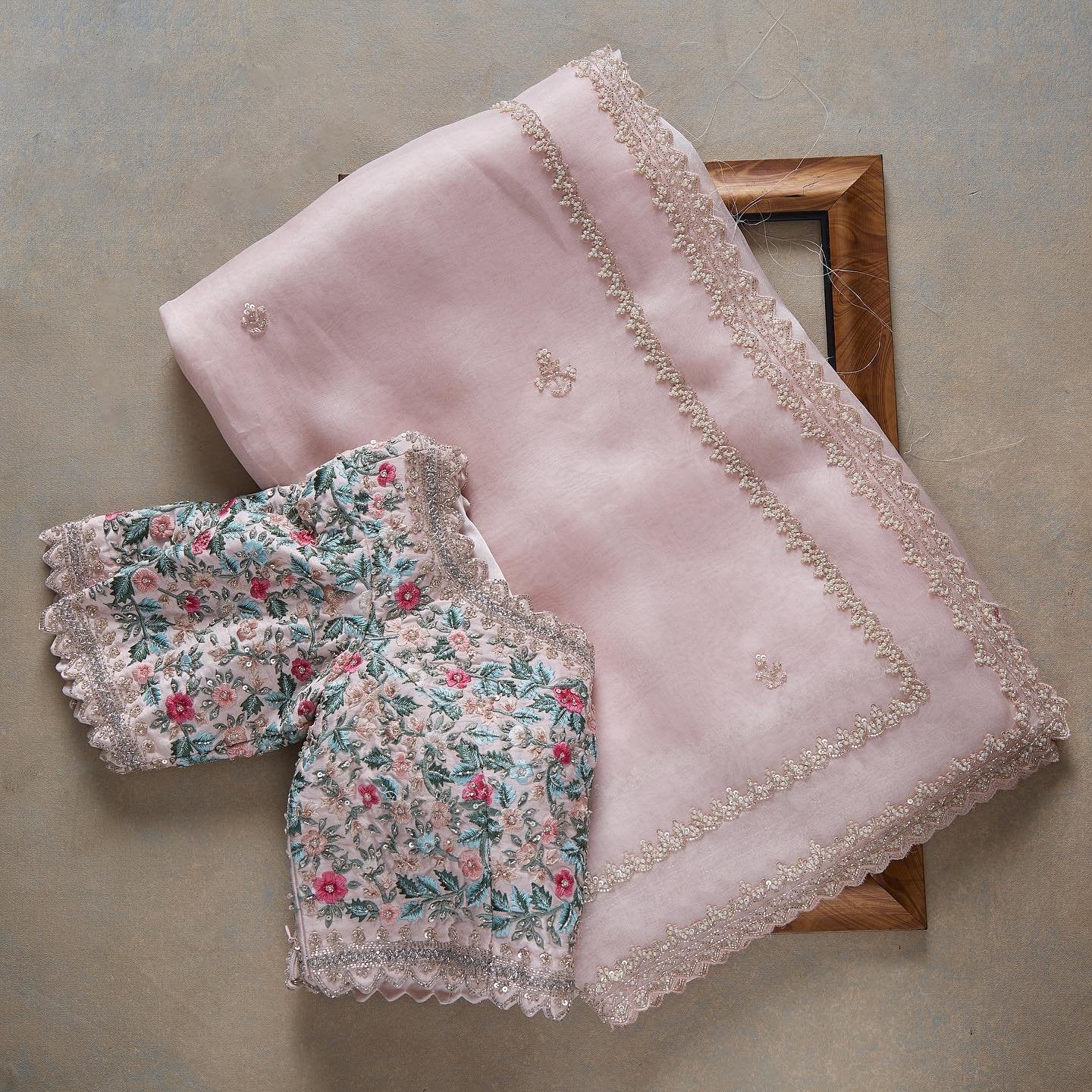Composition: Sari and blouse length- 6.5 metres. Includes coordinated unstitched blouse piece