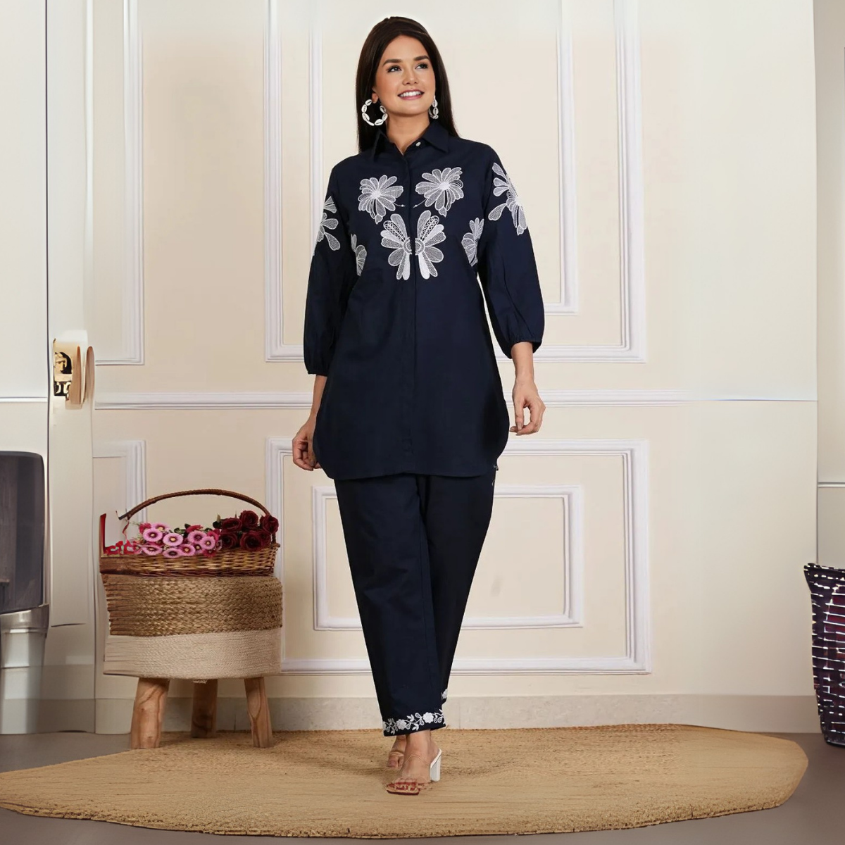 The casual cotton co-ord set is ideal for relaxed outings, featuring breathable fabrics and minimalist designs like stripes or solid colors, ensuring comfort and effortless style.