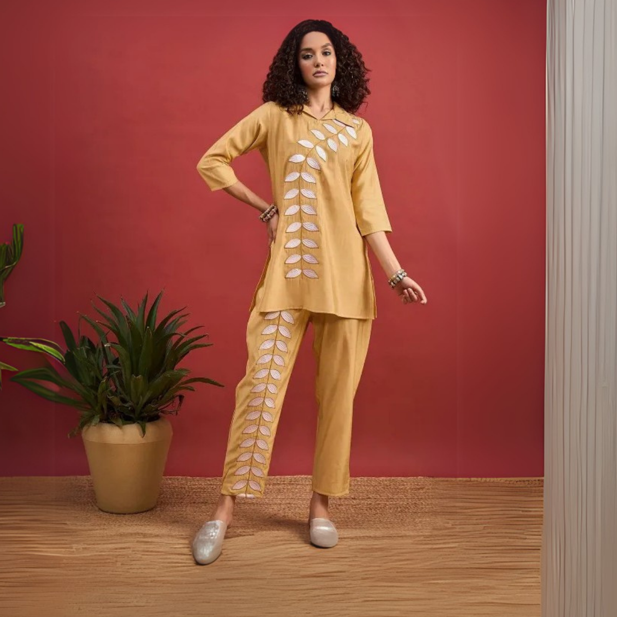 The casual cotton co-ord set is ideal for relaxed outings, featuring breathable fabrics and minimalist designs like stripes or solid colors, ensuring comfort and effortless style.