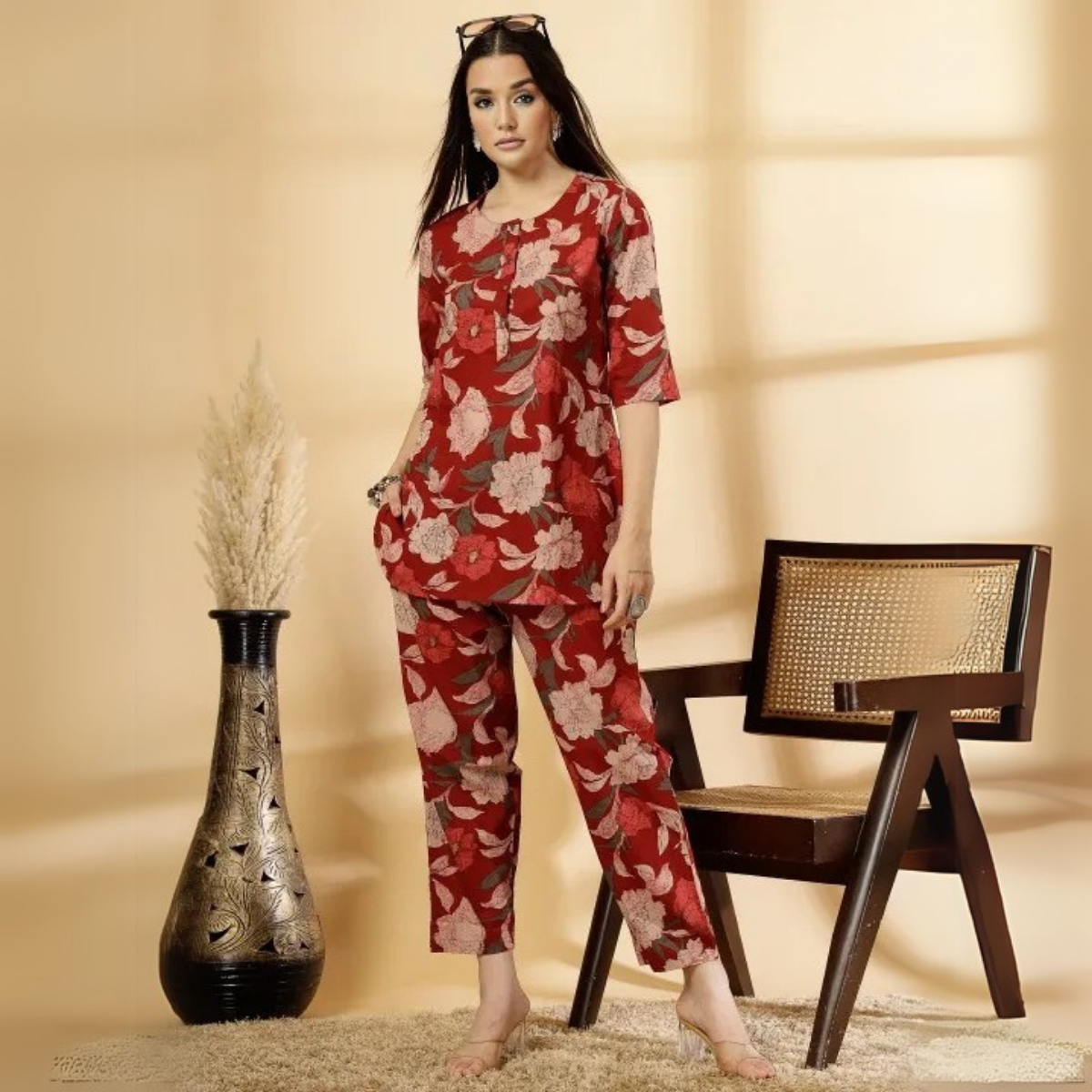 The 4 Co-ord Set Women Combo offers a versatile and stylish wardrobe upgrade for every occasion. This collection includes an elegant ethnic co-ord set, perfect for festive celebrations with its intricate prints and rich fabrics like silk or cotton in vibrant hues such as maroon or emerald green.